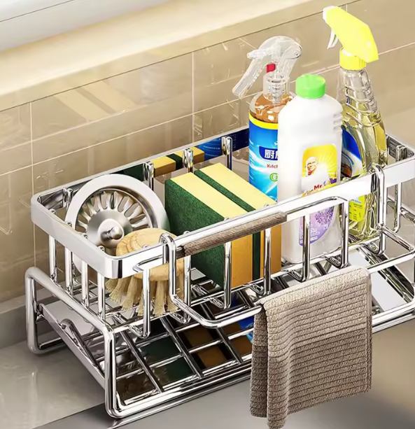 Gardez votre évier propre et organisé avec ce porte-éponges pour évier, conçu pour ranger efficacement vos accessoires de nettoyage du quotidien.
